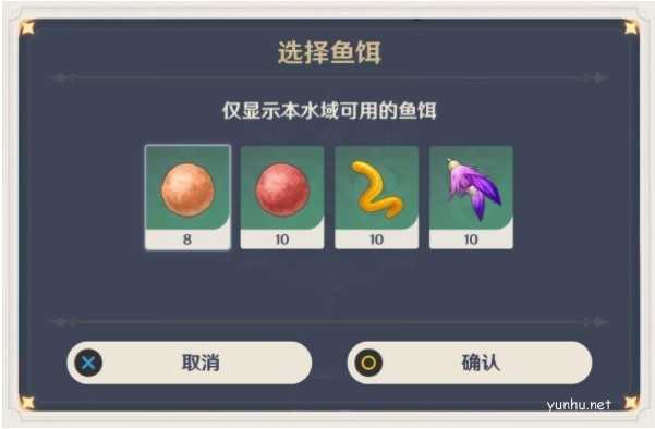 点击按钮后就会出现选择鱼饵的界面。