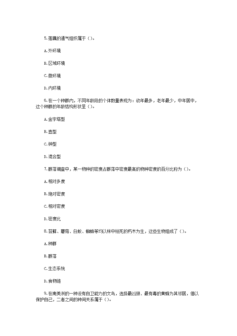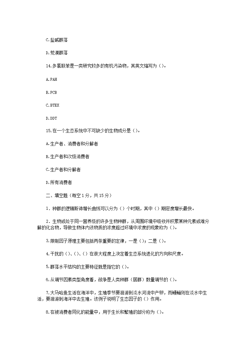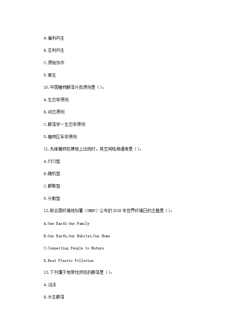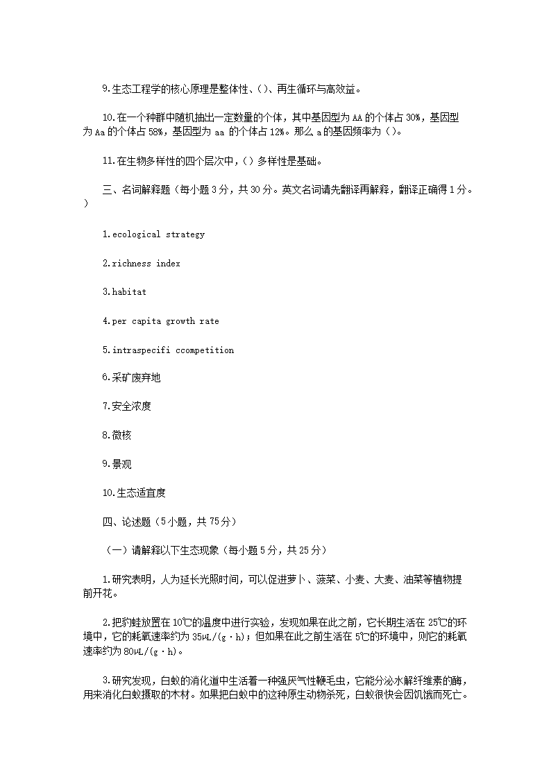 2019年云南昆明理工大学环境生态学考研真题A卷(Word版)09-02