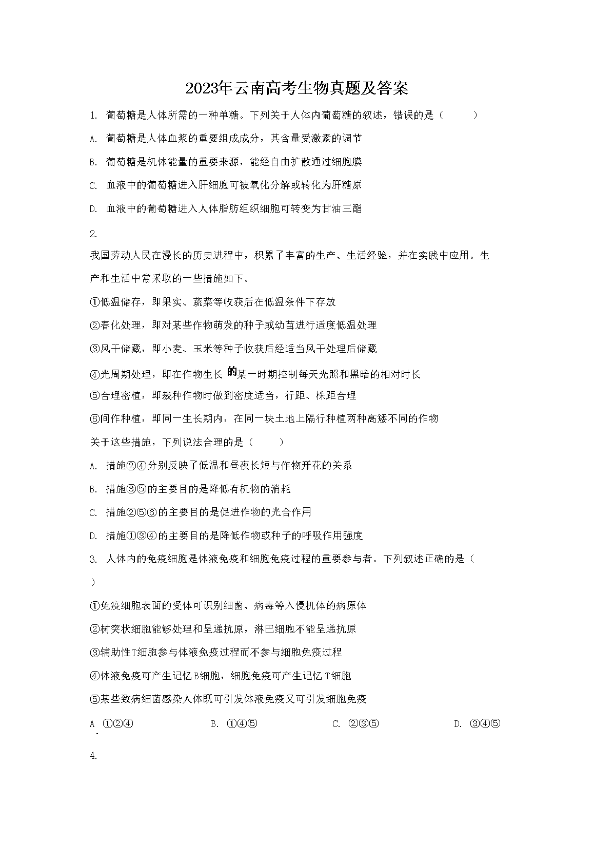 2023年云南高考生物真题及答案(Word版)06-13