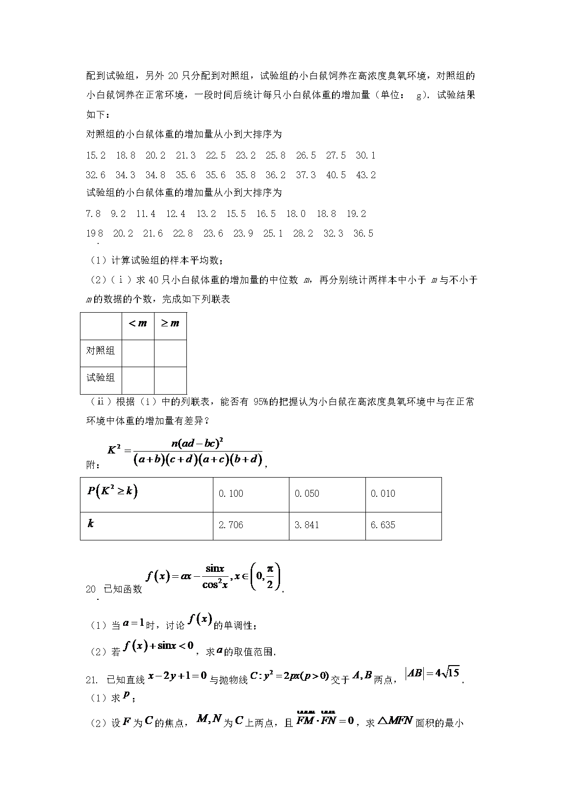2023年全国甲卷高考数学(文)真题及答案(Word版)06-10