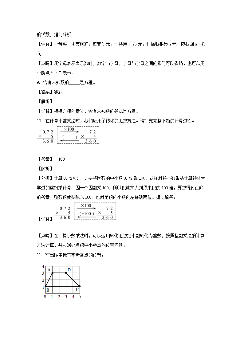 2021-2022学年云南保山隆阳区五年级上册数学期末试卷及答案(Word版)09-09