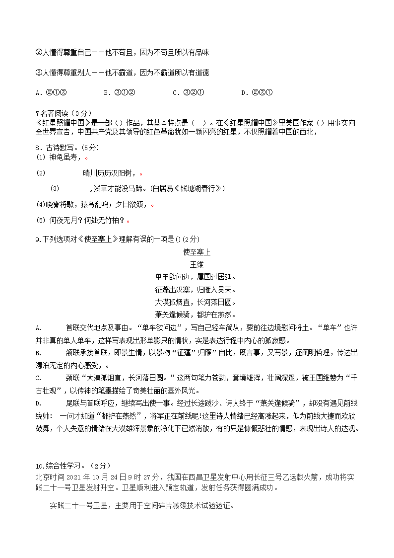 2021-2022学年辽宁省锦州市凌海市八年级上学期期中语文试题及答案(Word版)10-20