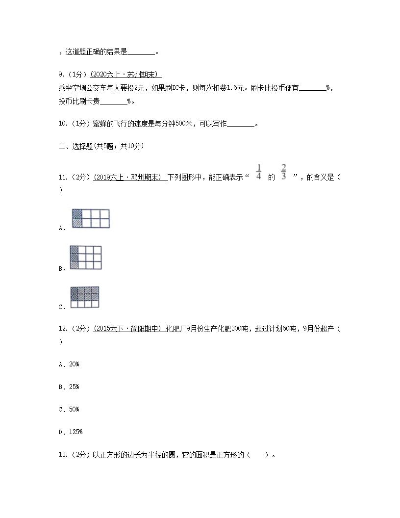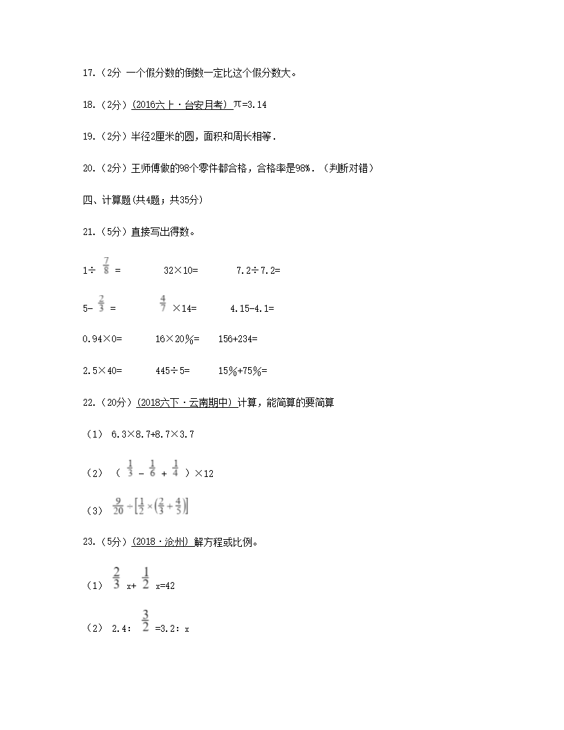 2021年四川甘孜藏族自治州六年级上册数学期末试卷及答案(Word版)07-31