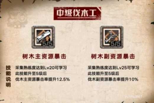 因为主资源有占用背包的缺点,且伐木工并不缺乏伐木主资源,所以树木主资源暴击不建议升级。