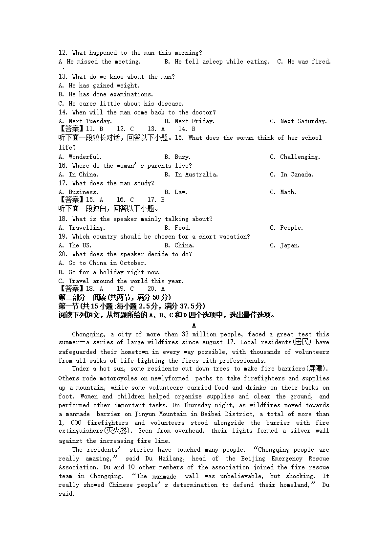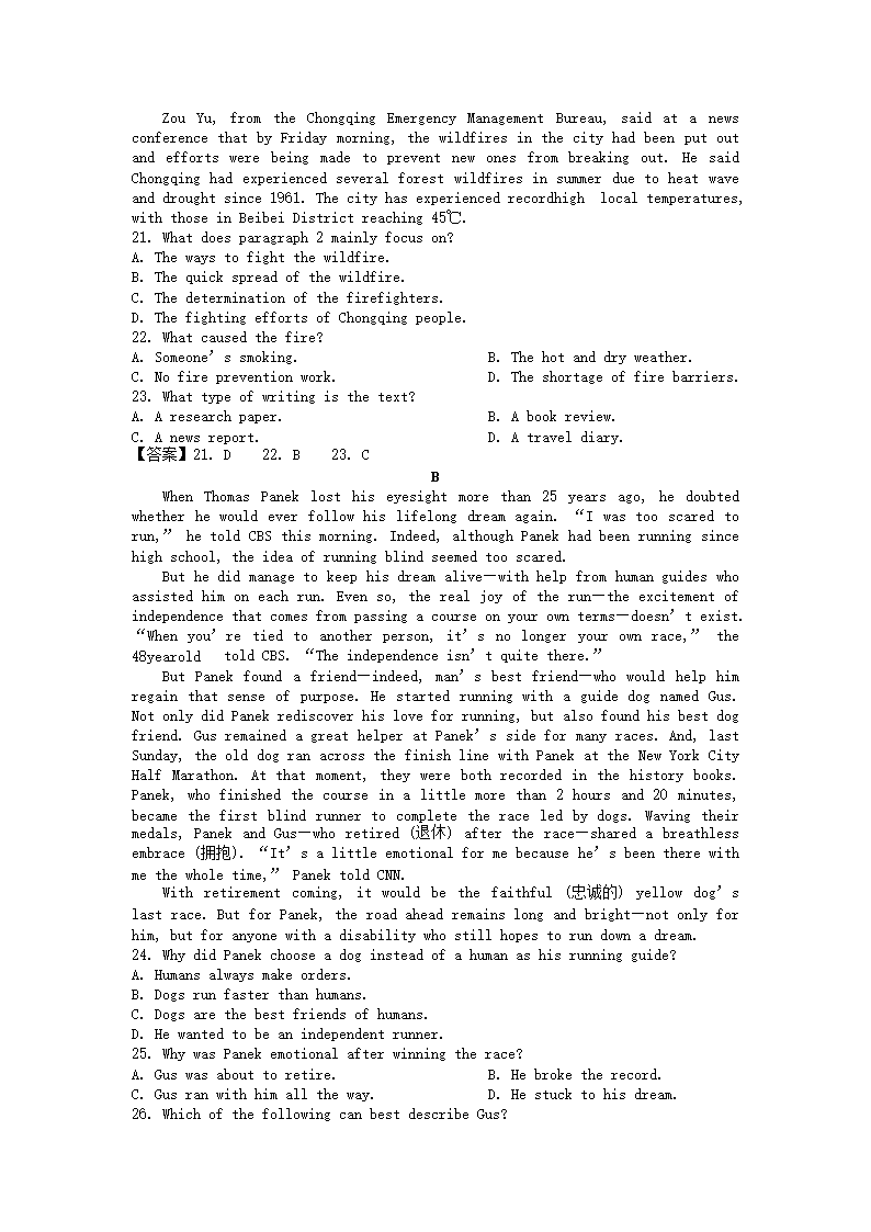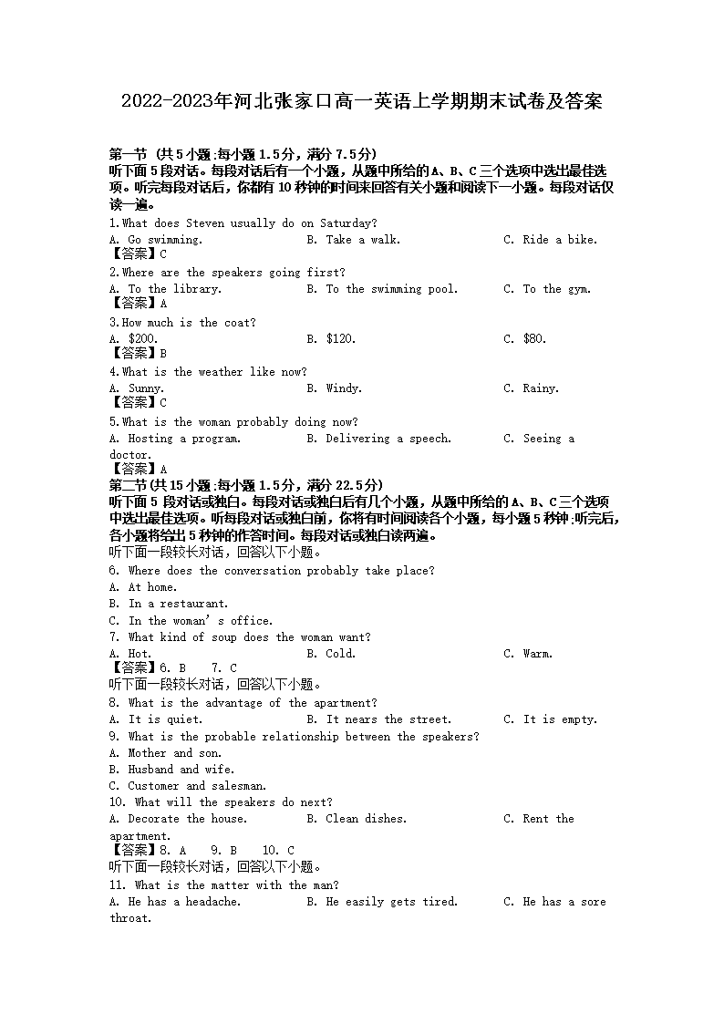 2022-2023年河北张家口高一英语上学期期末试卷及答案(Word版)09-23