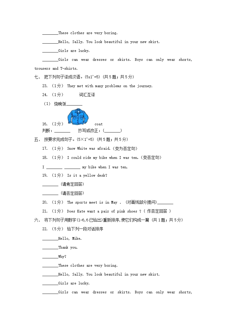 【文档预览】 文档大全网整理发布2021年内蒙古包头六年级下册期末英语试卷及答案(Word版),前五页预览如下:
