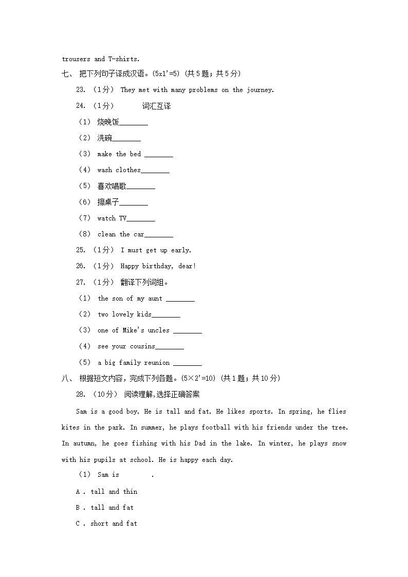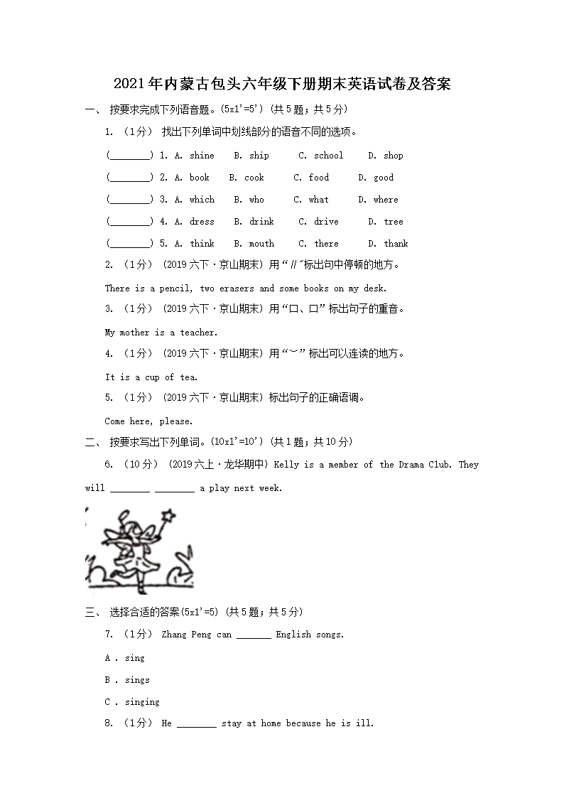 2021年内蒙古包头六年级下册期末英语试卷及答案(Word版)06-30