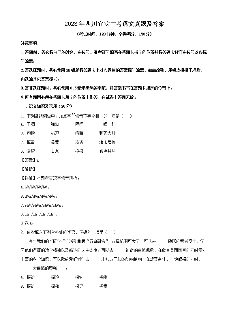 2023年四川宜宾中考语文真题及答案(Word版)06-22