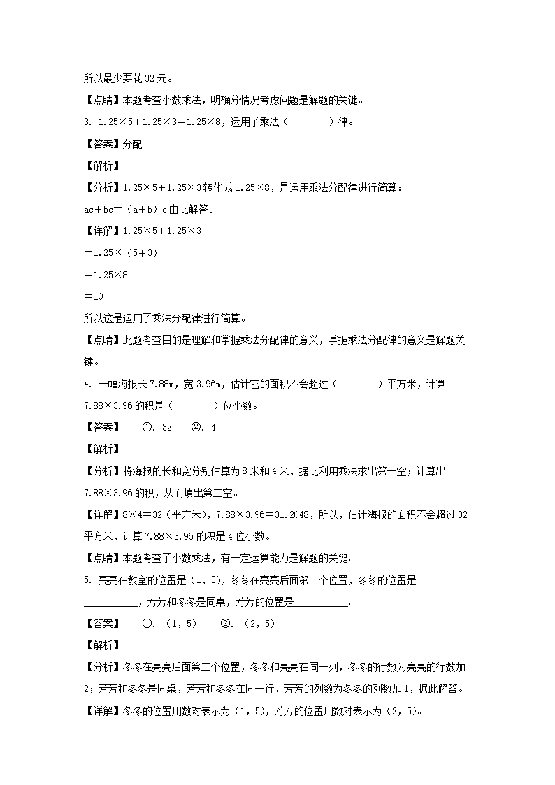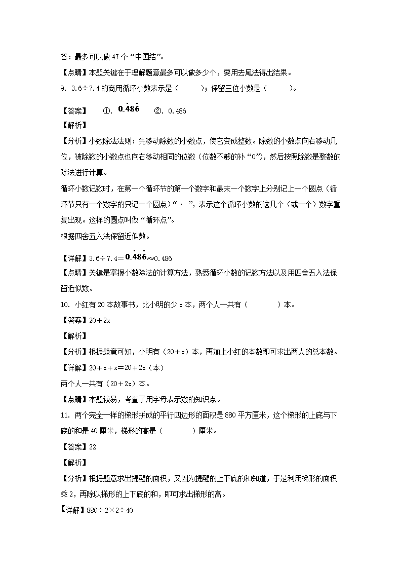 2021-2022学年江西抚州金溪县五年级上册数学期末试卷及答案(Word版)09-08