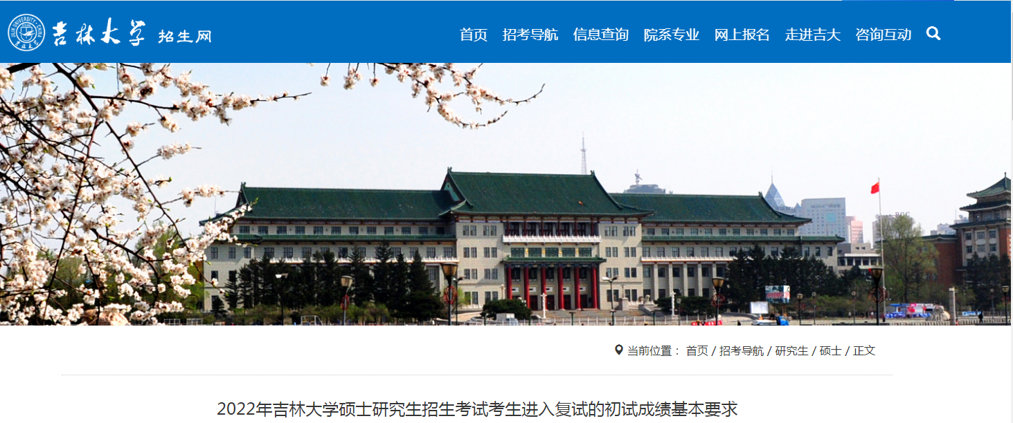 【#考研# 导语】©文档大全网考研频道从吉林大学研究生招生网了解到,吉林大学2022年考研复试分数线(已公布),详情如下: