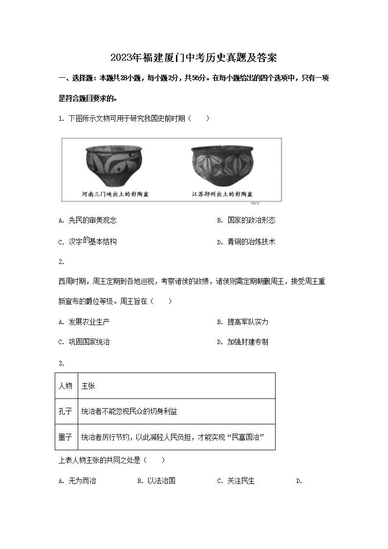 2023年福建厦门中考历史真题及答案(Word版)07-15