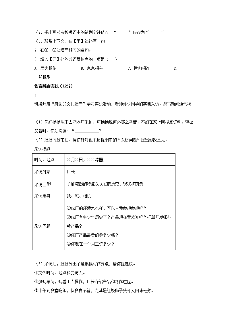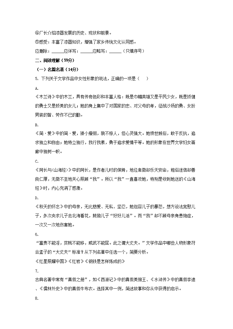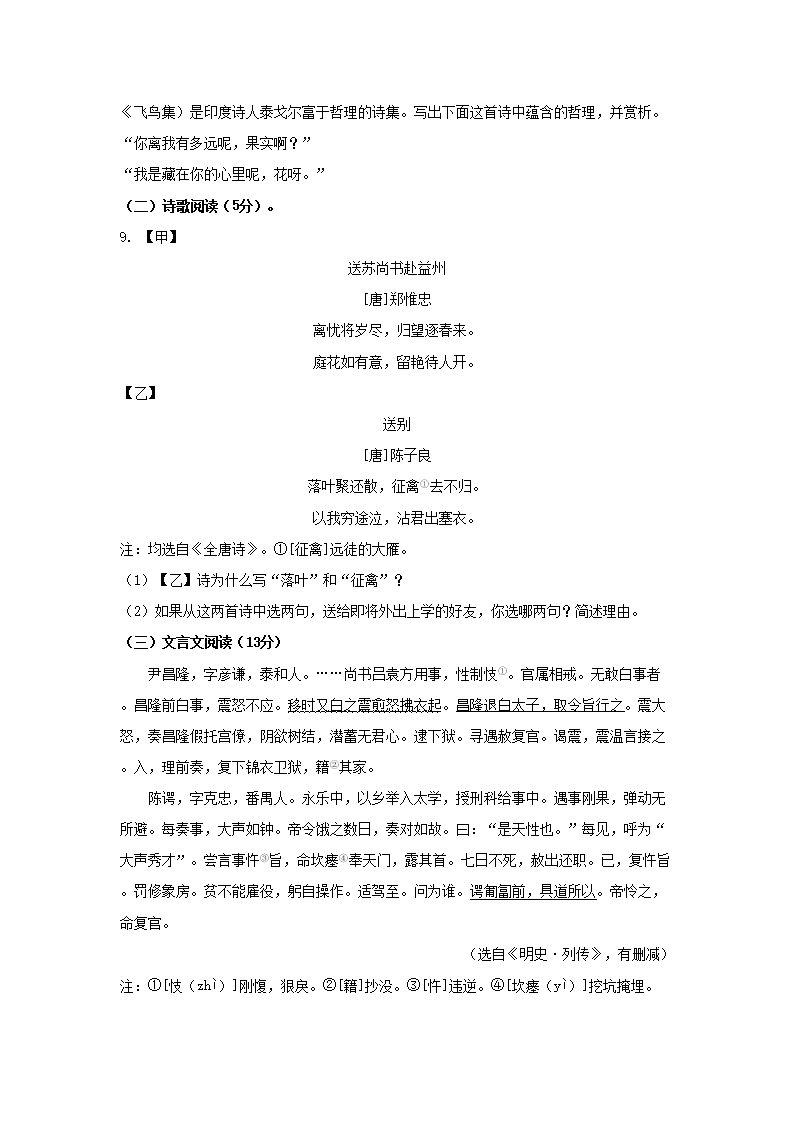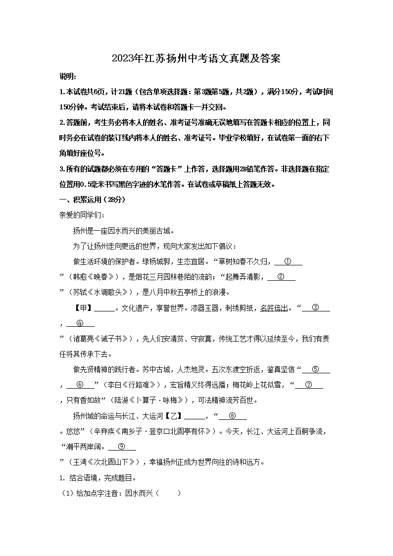 2023年江苏扬州中考语文真题及答案(Word版)09-26