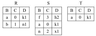 由关系R和S通过运算得到关系T,则所使用的运算为