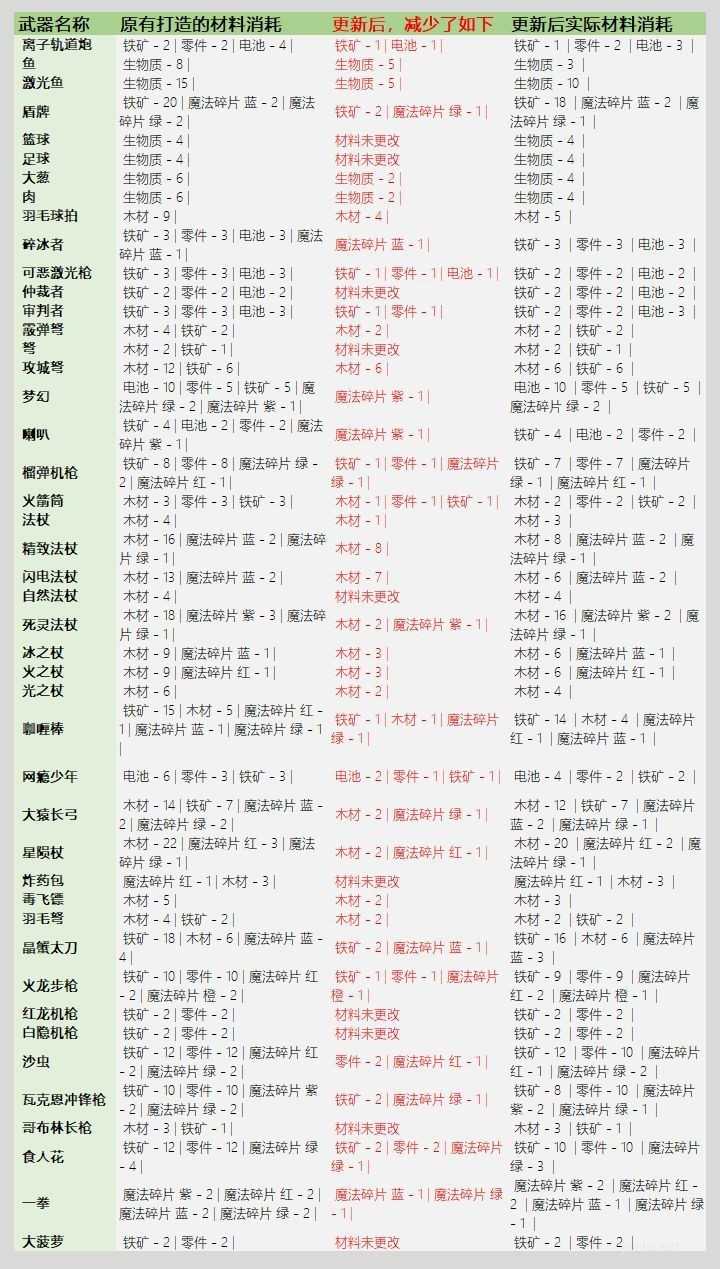 【元气骑士3.2.1武器锻造材料表】