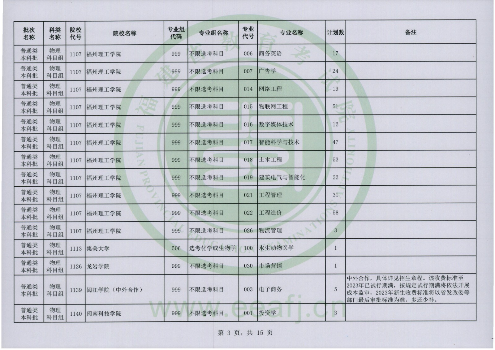(3)有关高校的办学地点、收费情况、报考条件等,请考生参阅《福建省2023年普通高校招生计划》、有关政策规定和该高校的招生章程等。