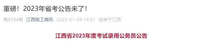 【#公务员考试# 导语】2023年江西公务员报名时间是什么时候?®文档大全网从江西组工微讯了解到,根据《2023年江西省考试录用公务员公告》获悉,2023年江西公务员报名时间在1月11日9:00至16日17:00期间,具体详情安排如下: