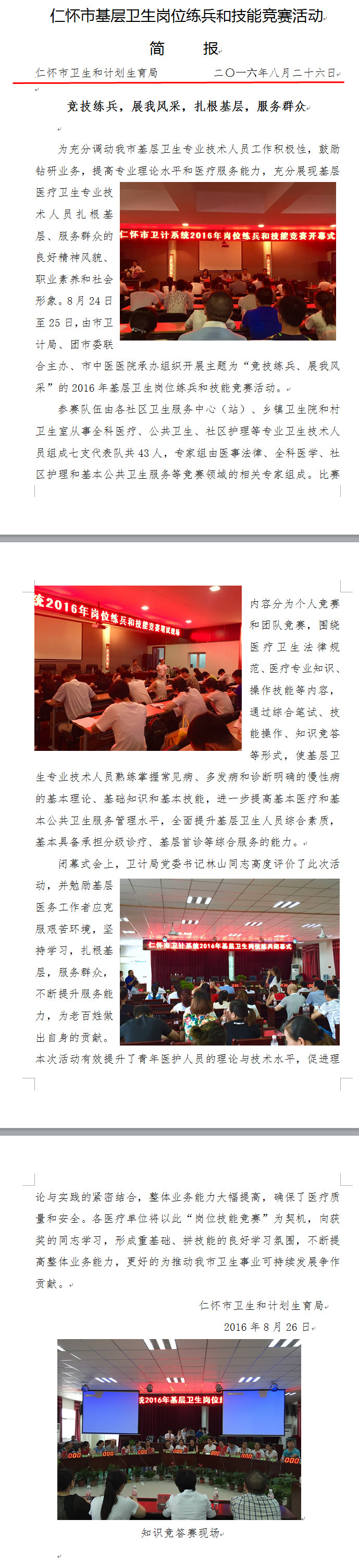 贵州仁怀市基层卫生岗位练兵和技能竞赛活动简报04-26
