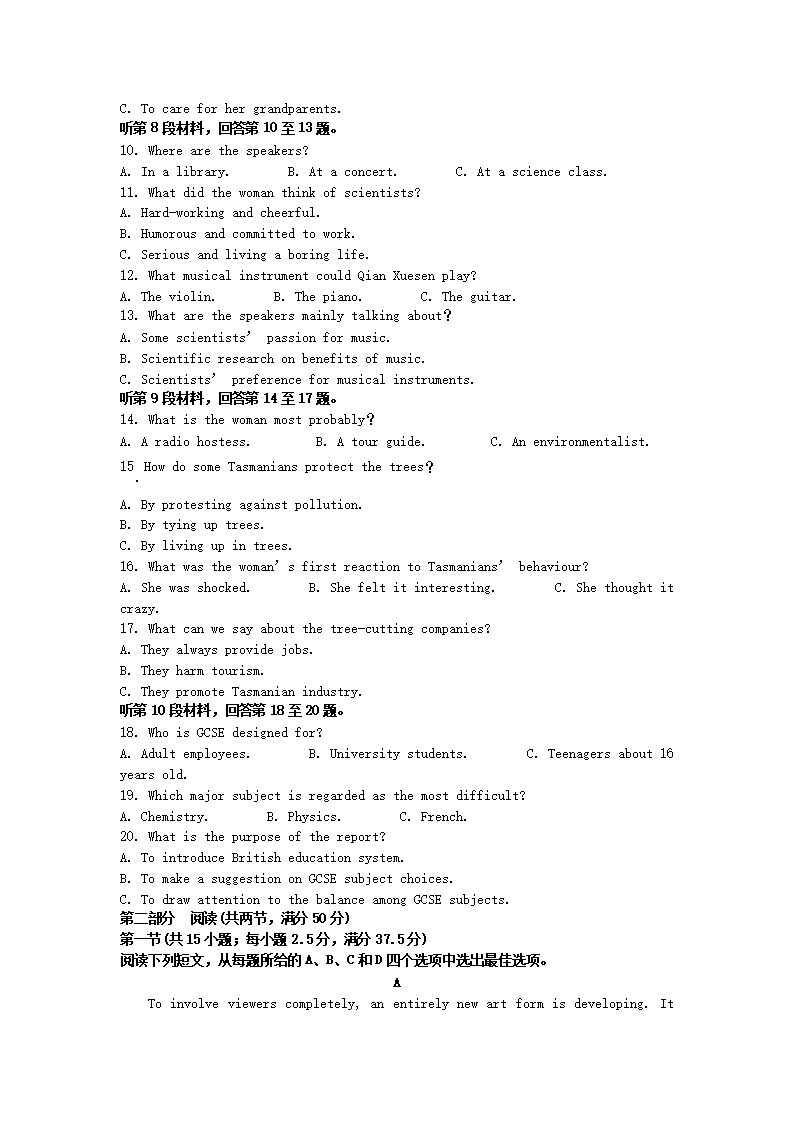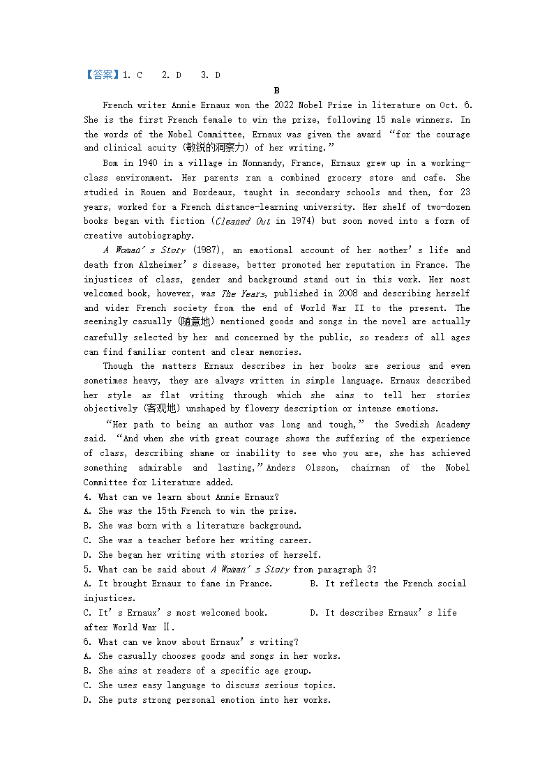 2022-2023年福建泉州高一英语下学期期末试卷及答案(Word版)10-08