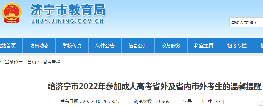 给山东济宁2022年参加成人高考省外及省内市外考生的温馨提醒10-28
