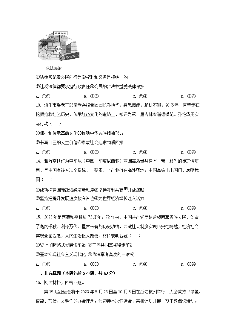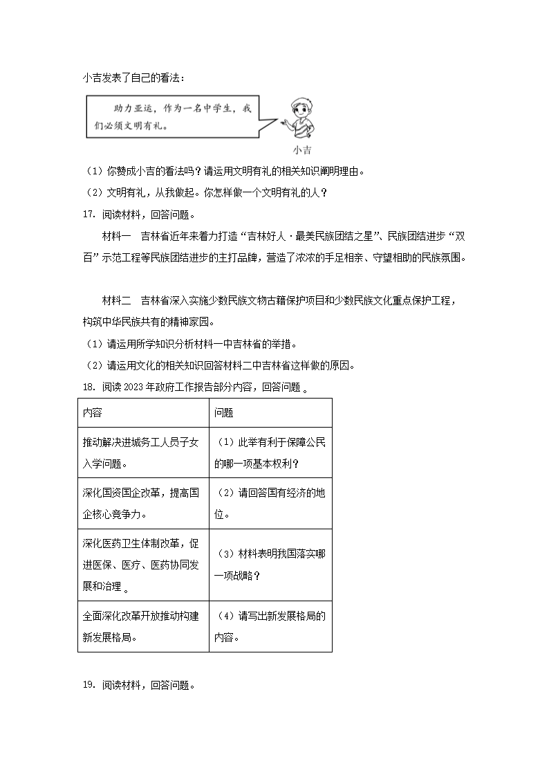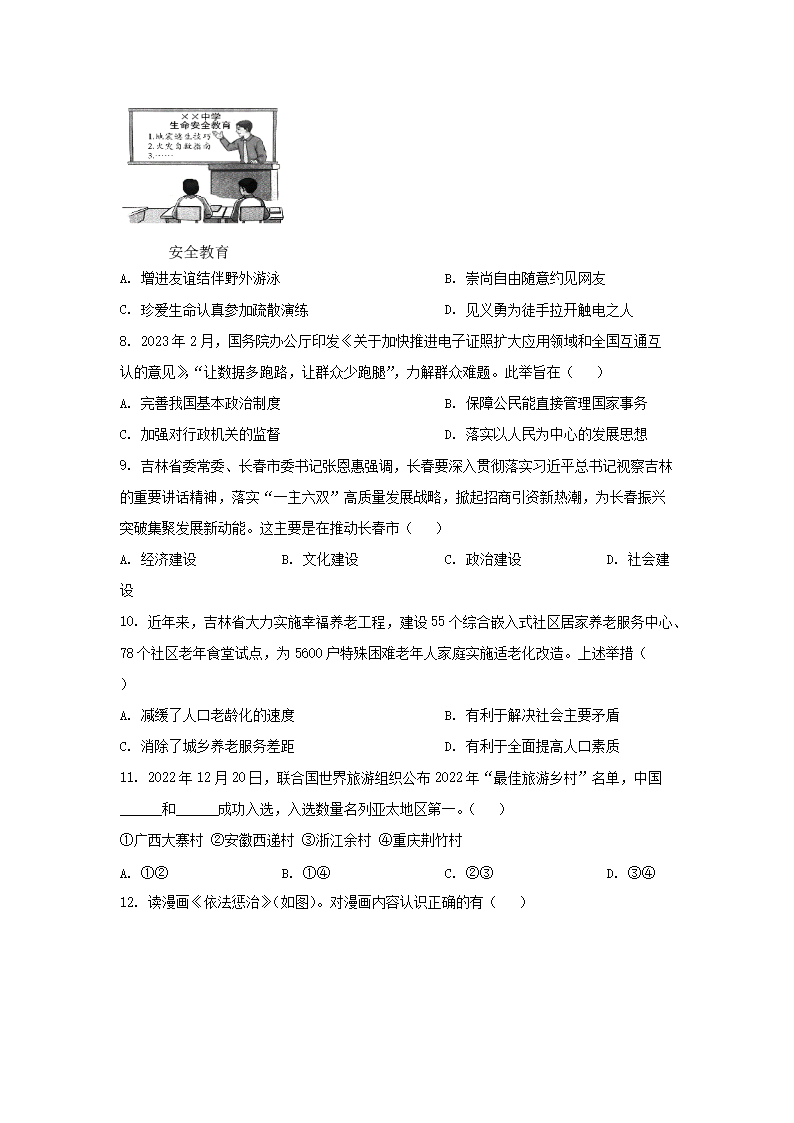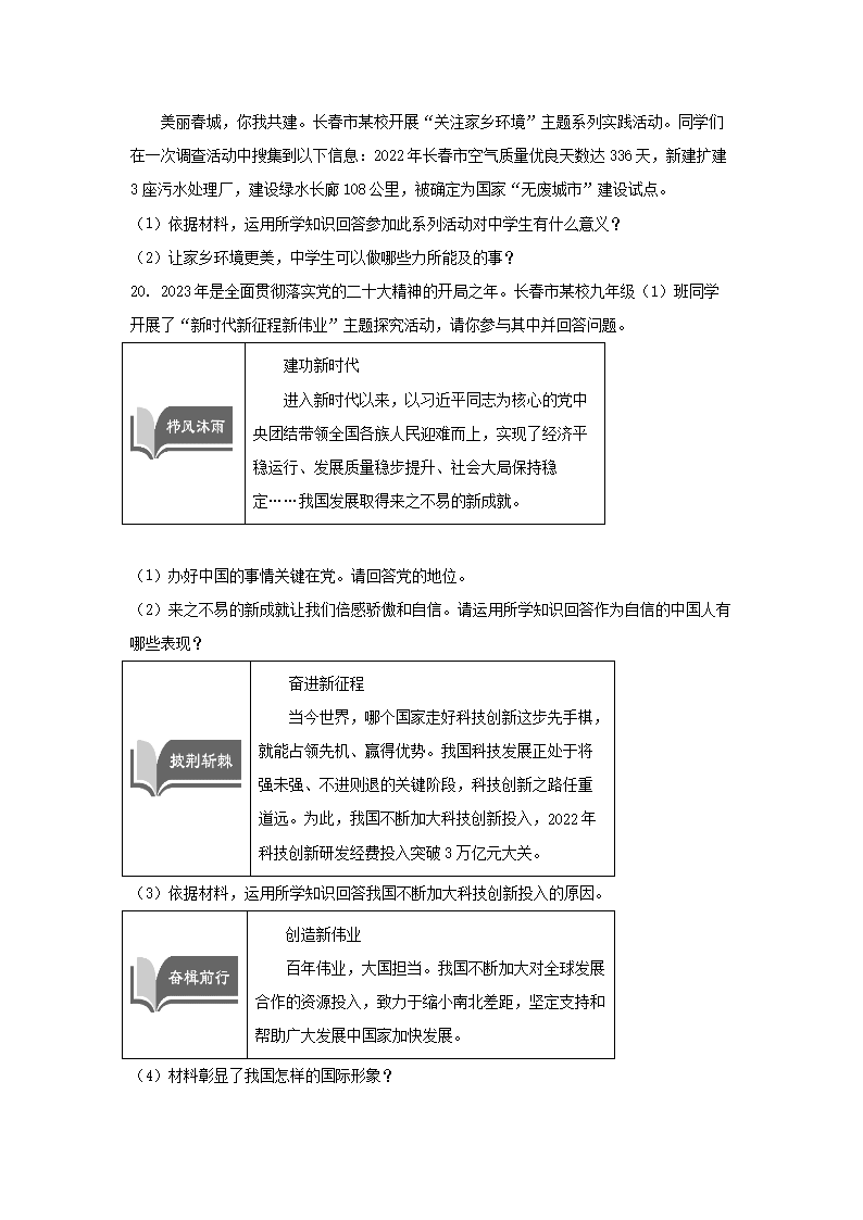 2023年吉林长春中考道德与法治试题及答案(Word版)08-23