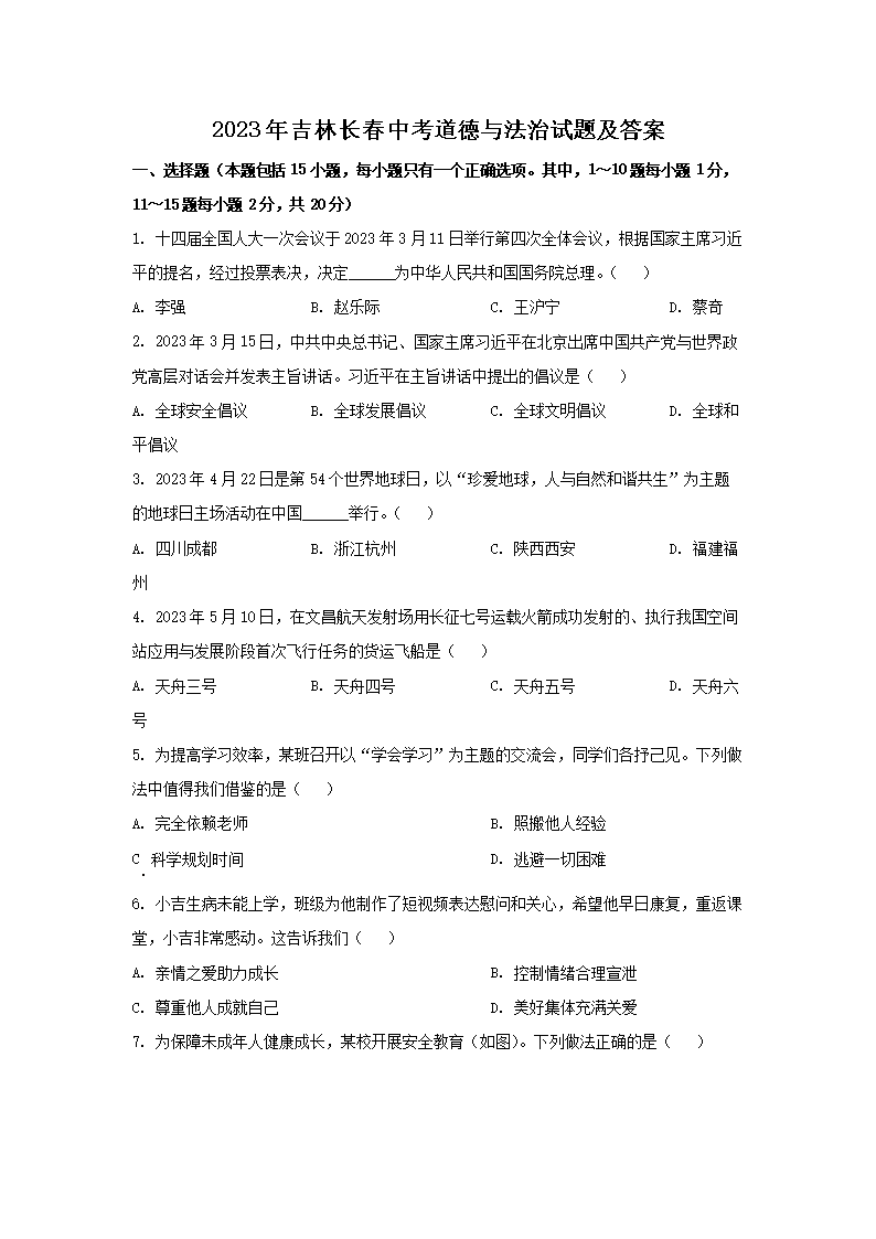 【文档预览】 文档大全网整理发布2023年吉林长春中考道德与法治试题及答案(Word版),前五页预览如下: