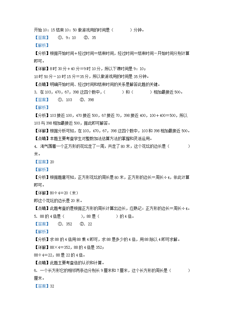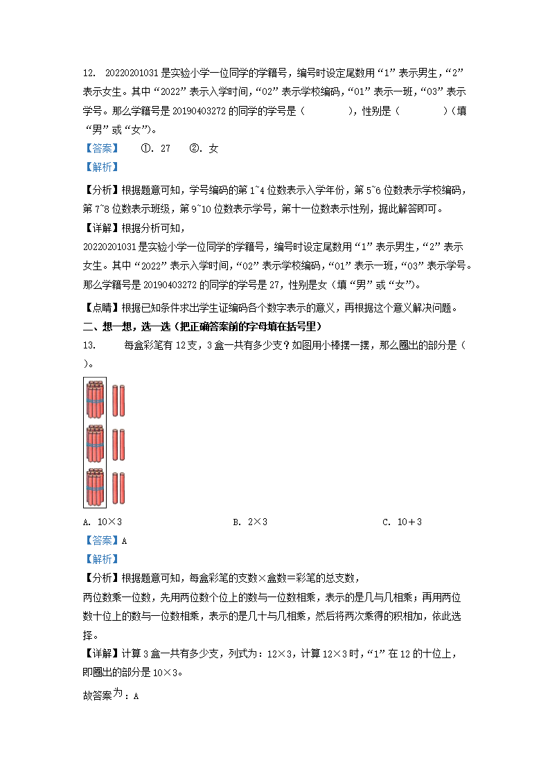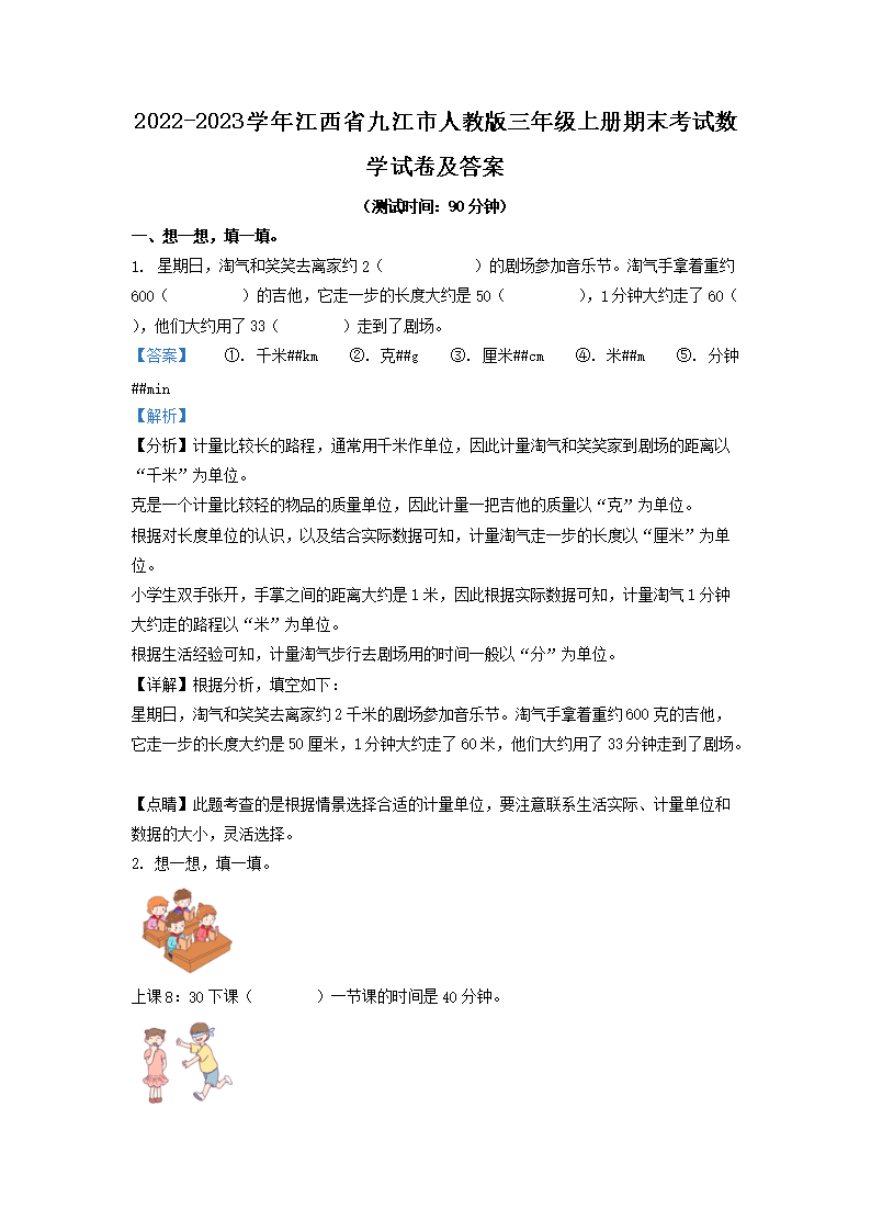 2022-2023学年江西省九江市人教版三年级上册期末考试数学试卷及答案(Word版)09-27
