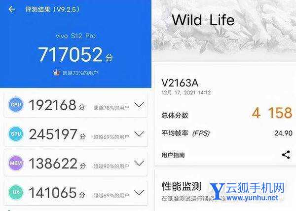 硬件方面,vivo S12Pro搭载了旗舰级SoC天玑1200和UFS 3.1机身存储,安兔兔跑分达到71万以上,3DMark Wild Life跑分也达到了4158,图形性能还是很出众的,这意味着vivo S12 Pro在游戏方面也是一个“狠角色”。