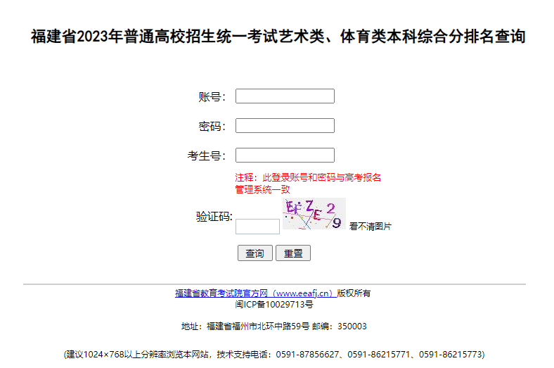 福建省2023年艺术类、体育类本科综合分排名已公布。考生可登录福建省教育考试院网站https://www.eeafj.cn/,进入“数字服务大厅”—“高考高招”—“艺术类、体育类本科综合分排名查询”,凭本人账号、密码和考生号进行查询。