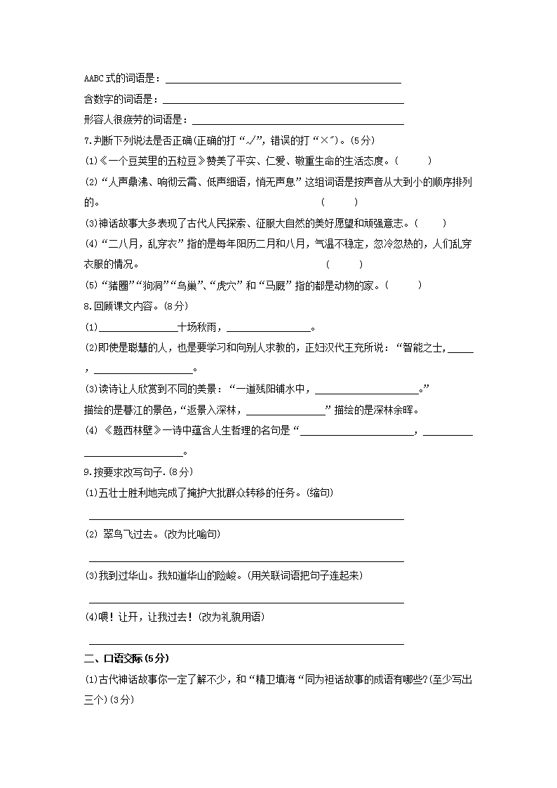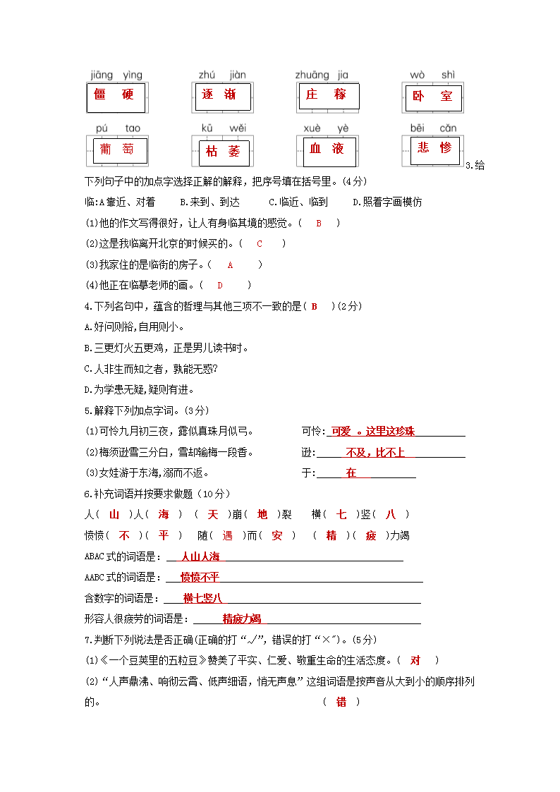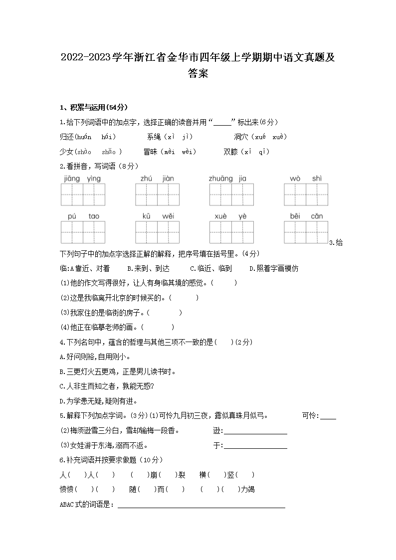 2022-2023学年浙江省金华市四年级上学期期中语文真题及答案(Word版)10-09