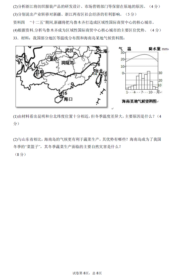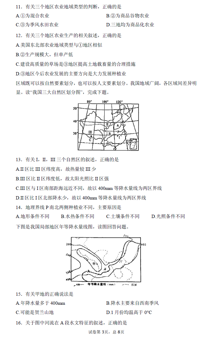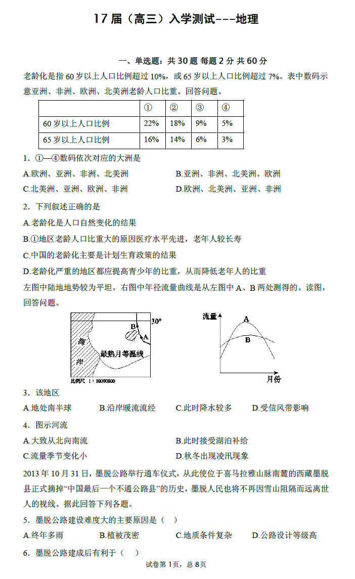 河南省郑州市第一中学网校2017届高三入学测试地理试题03-27