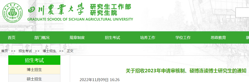 四川农业大学关于招收2023年申请审核制、硕博连读博士研究生的通知11-11