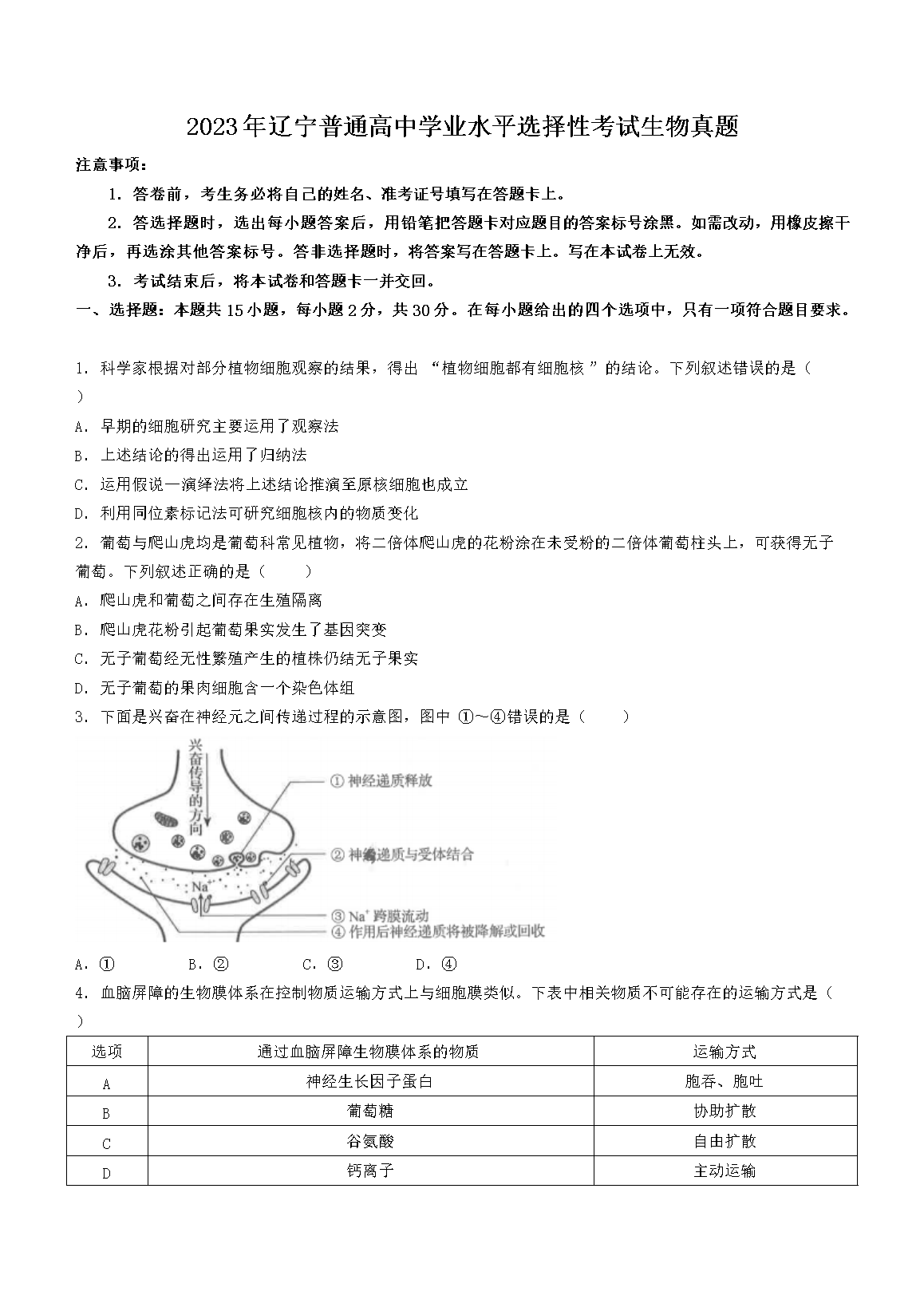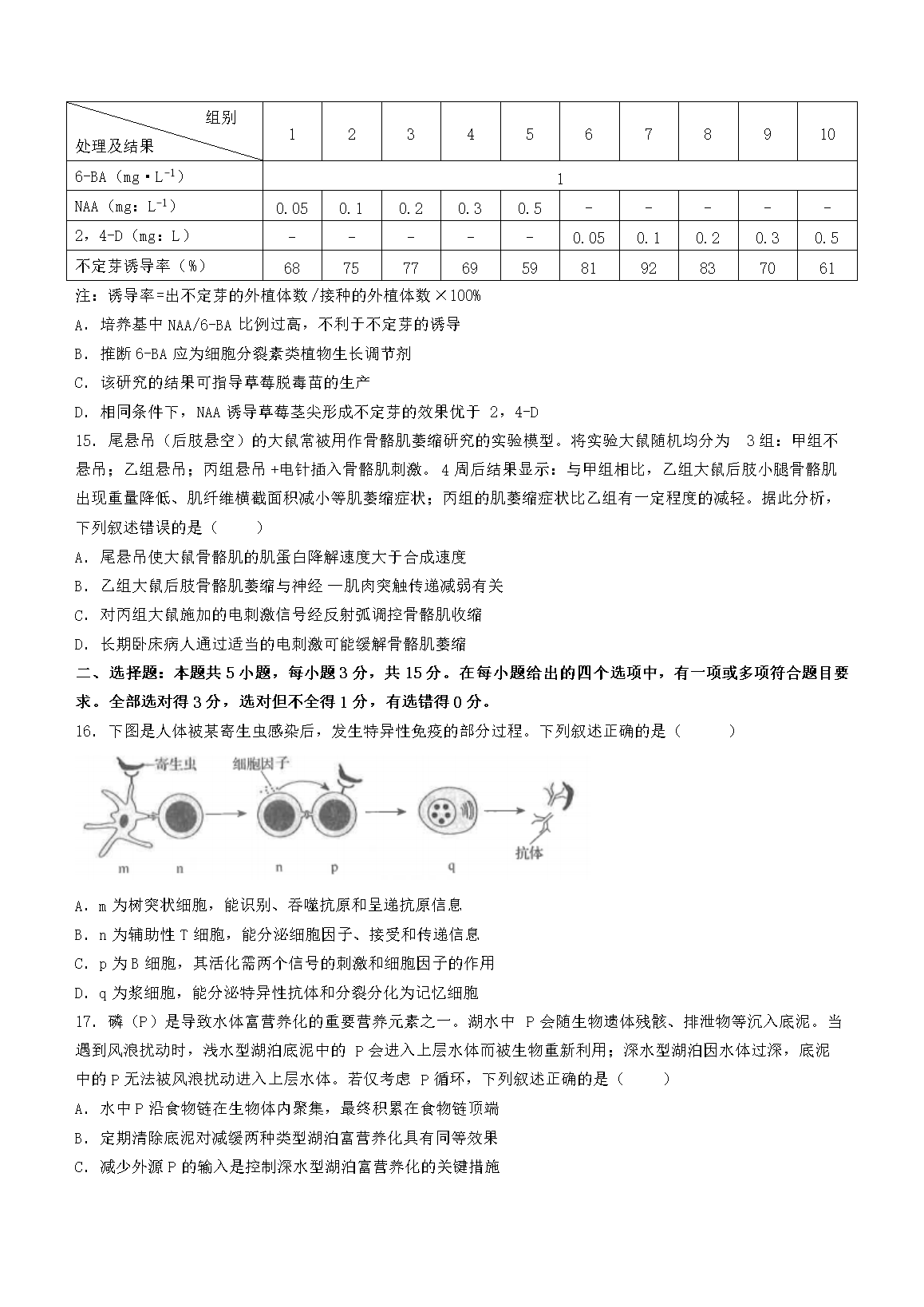 2023年辽宁学考选择性考试生物真题(Word版)10-12