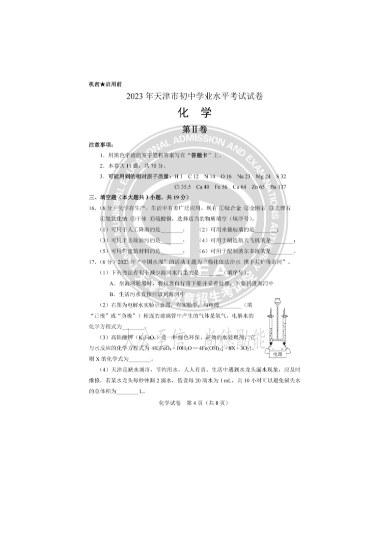 【文档预览】 文档大全网整理发布2023年天津中考化学真题及答案(图片版),前五页预览如下: