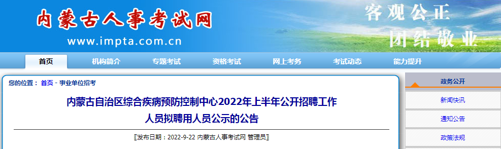 2022年上半年内蒙古自治区综合疾病预防控制中心公开招聘工作人员拟聘用人员公示的公告09-23