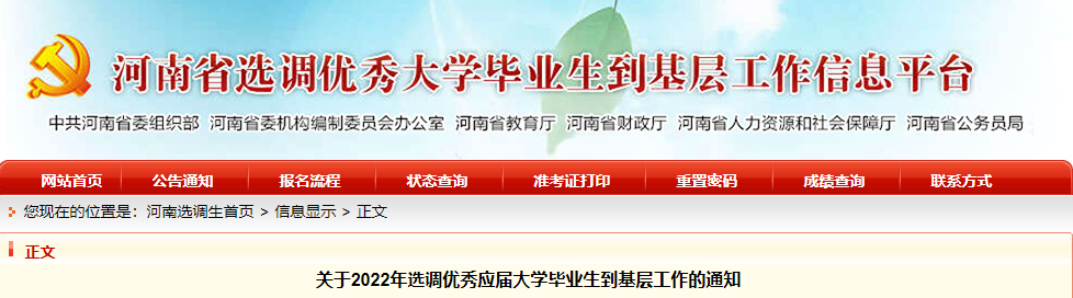 河南选调生报名时间:2022年2月13日8:00至2月17日18:00