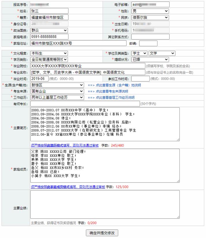 标有“*”的项目为必填项目,报考者填写的文字内容不得超过限定的字符数,并严格按照提示格式填写。