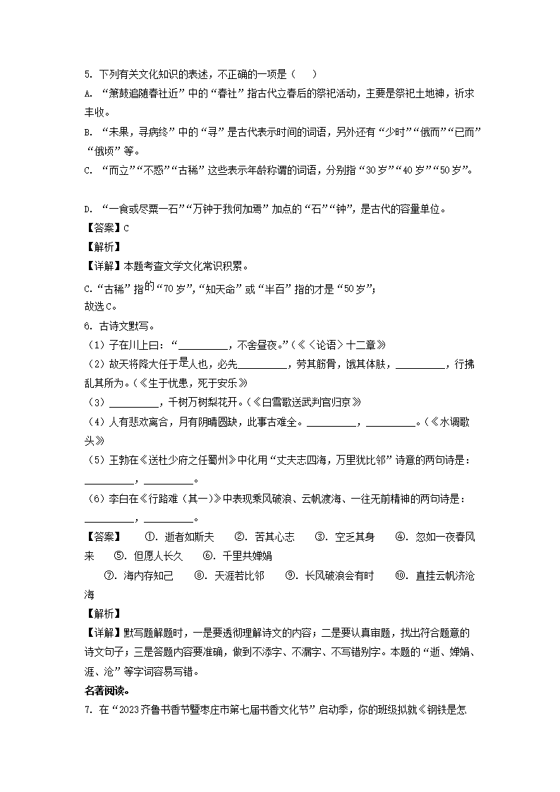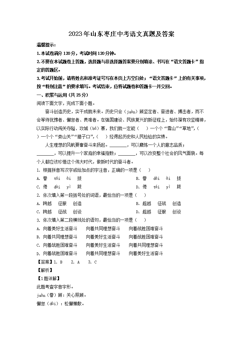 2023年山东枣庄中考语文真题及答案(Word版)06-19