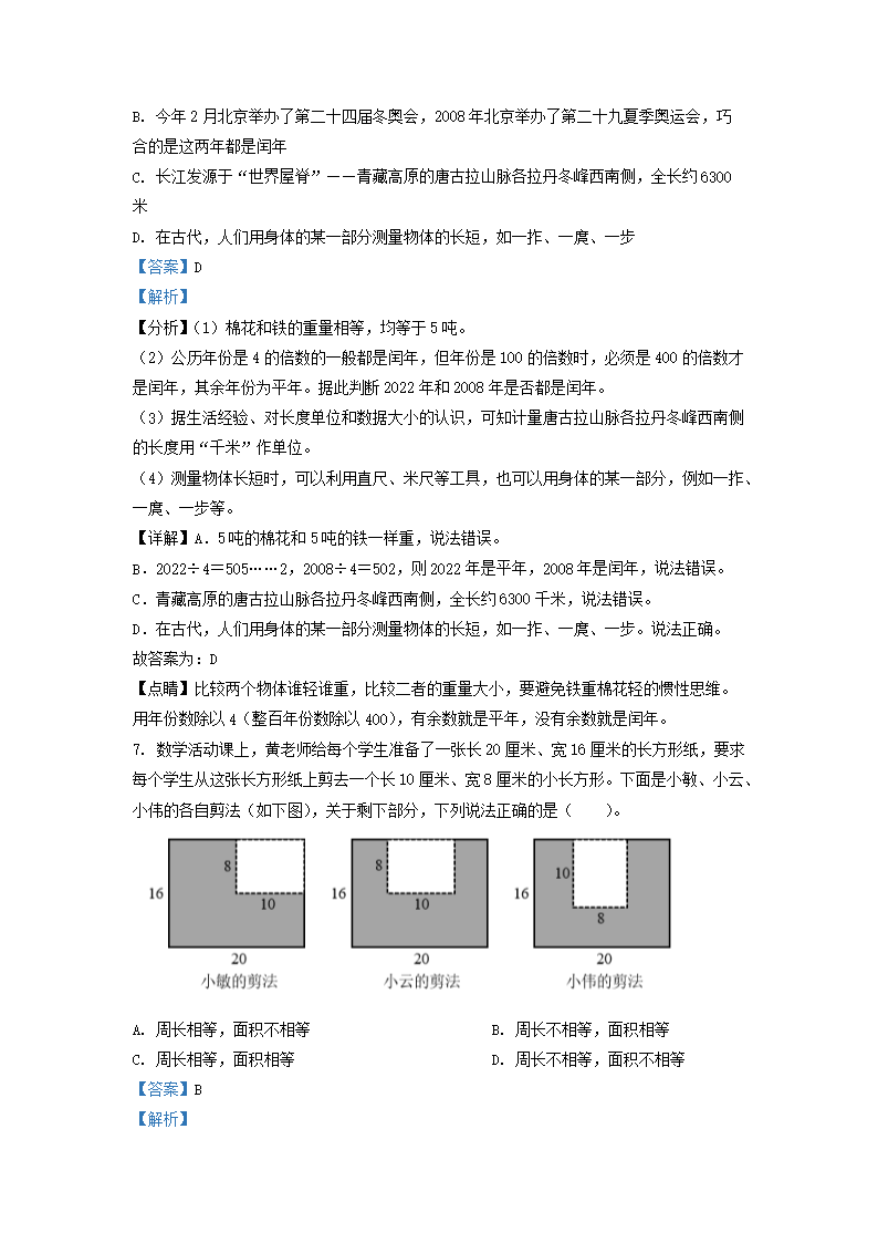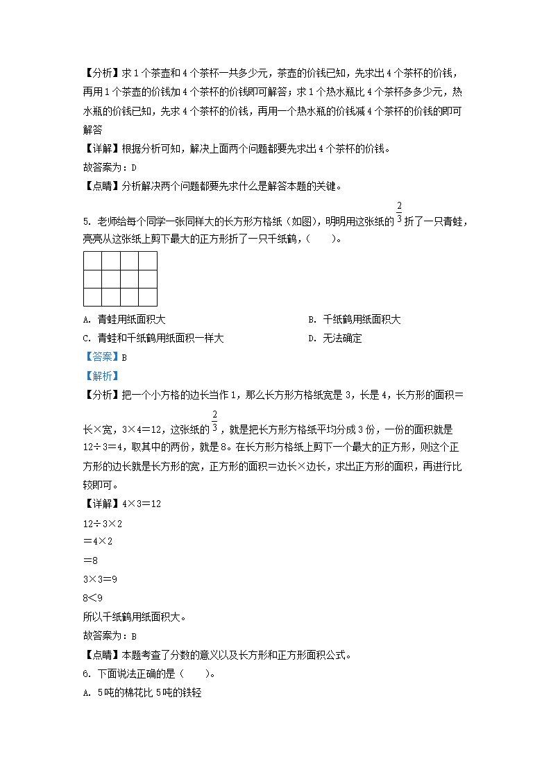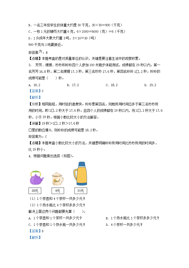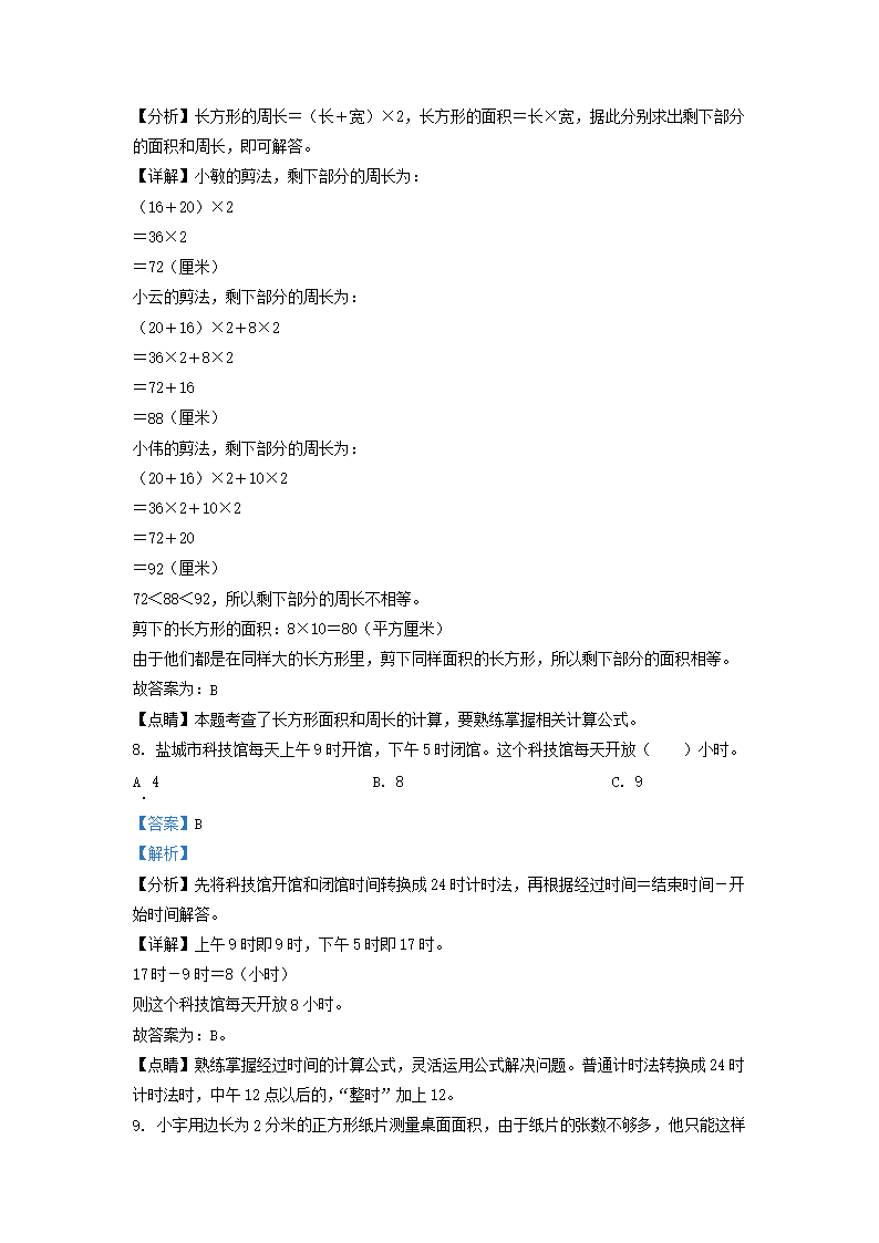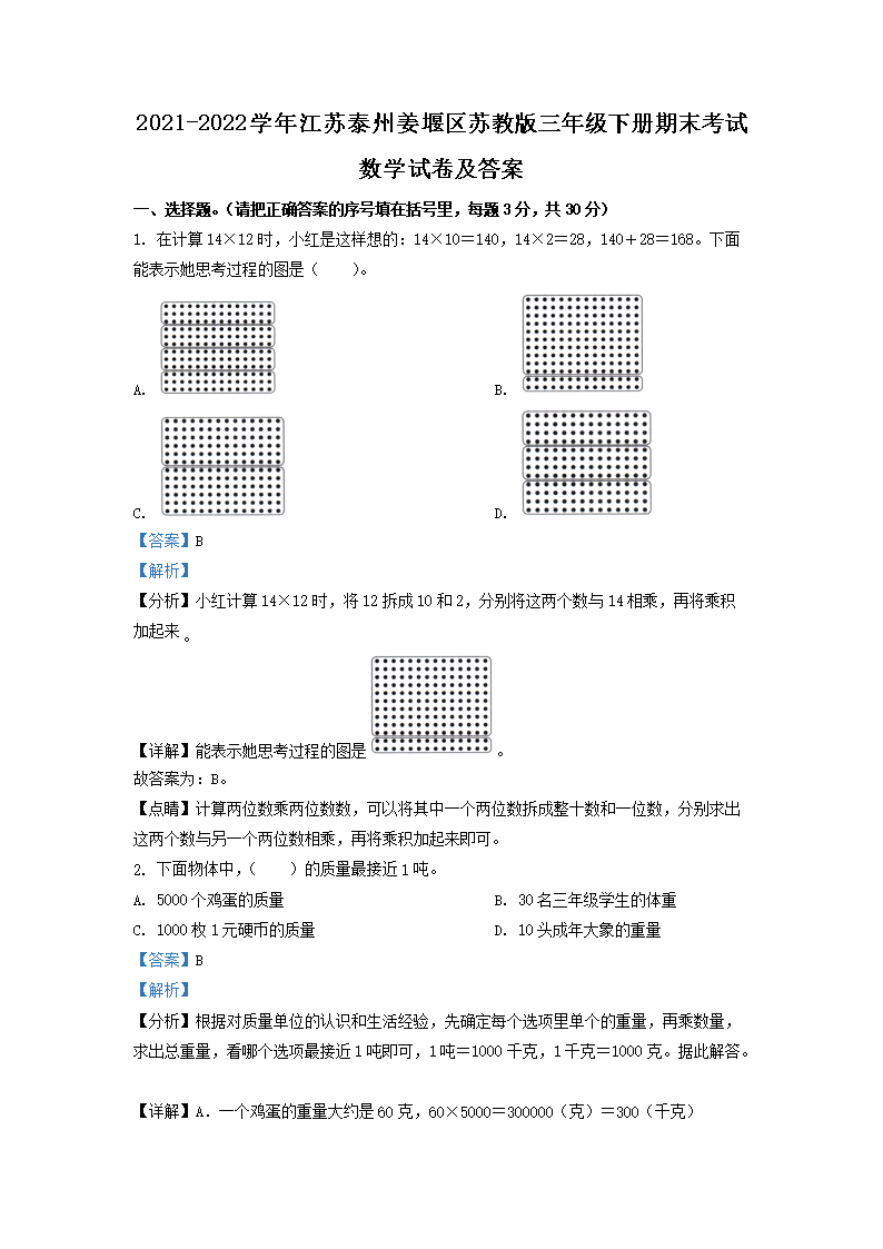 2021-2022学年江苏泰州姜堰区苏教版三年级下册期末考试数学试卷及答案(Word版)07-26