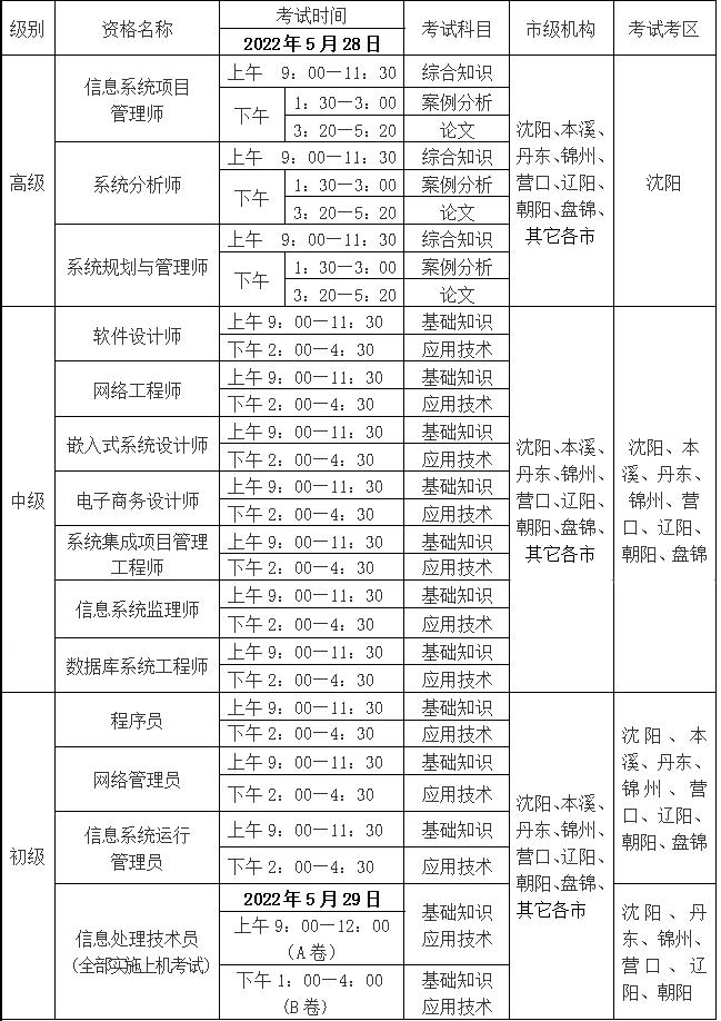【#软考# 导语】©文档大全网从辽宁省信息技术教育中心了解到,2022上半年辽宁软考报名时间:3月22日-31日,考试时间:5月28日-29日,更多事宜请参考阅读《考务通知》,官方公告原文如下: