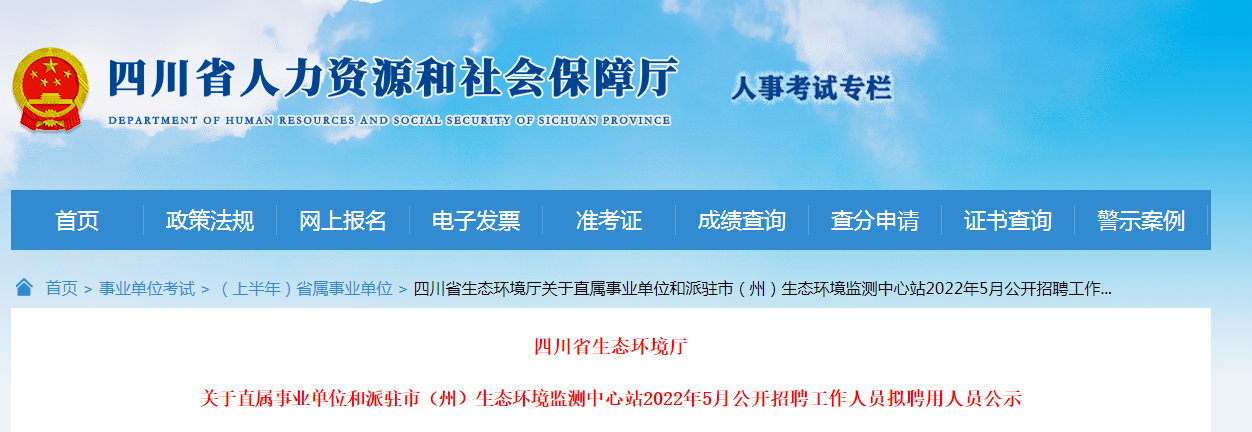 2022年5月四川生态环境厅直属事业单位和派驻市(州)生态环境监测中心站招聘拟聘公示11-19