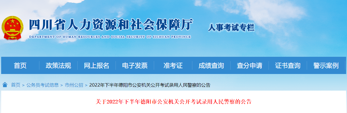 原文标题:关于2022年下半年德阳市公安机关公开考试录用人民警察的公告