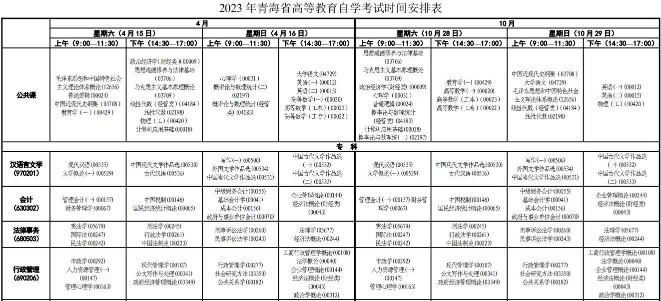 点击查看:2023年青海省高等教育自学考试时间安排表(完整版)
