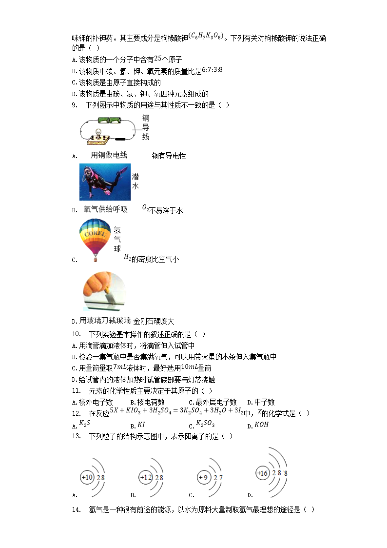 2002年黑龙江齐齐哈尔市中考化学真题及答案(Word版)05-31