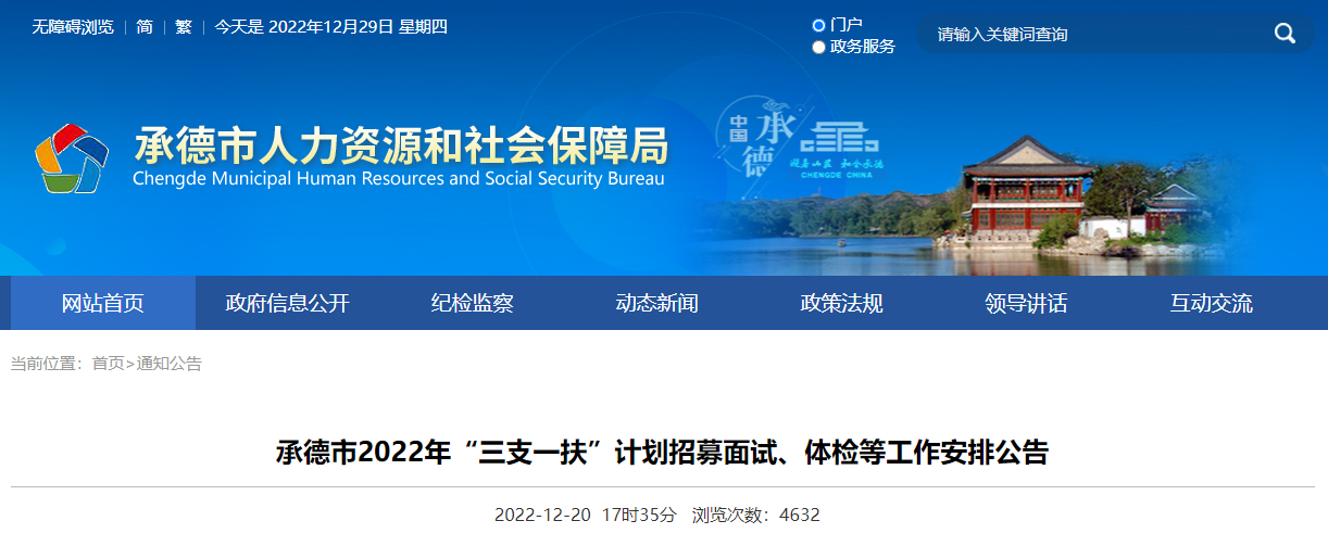 原文标题:承德市2022年“三支一扶”计划招募面试、体检等工作安排公告