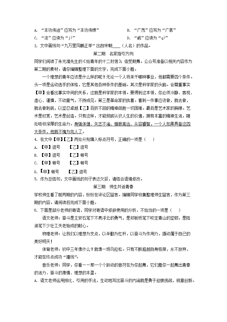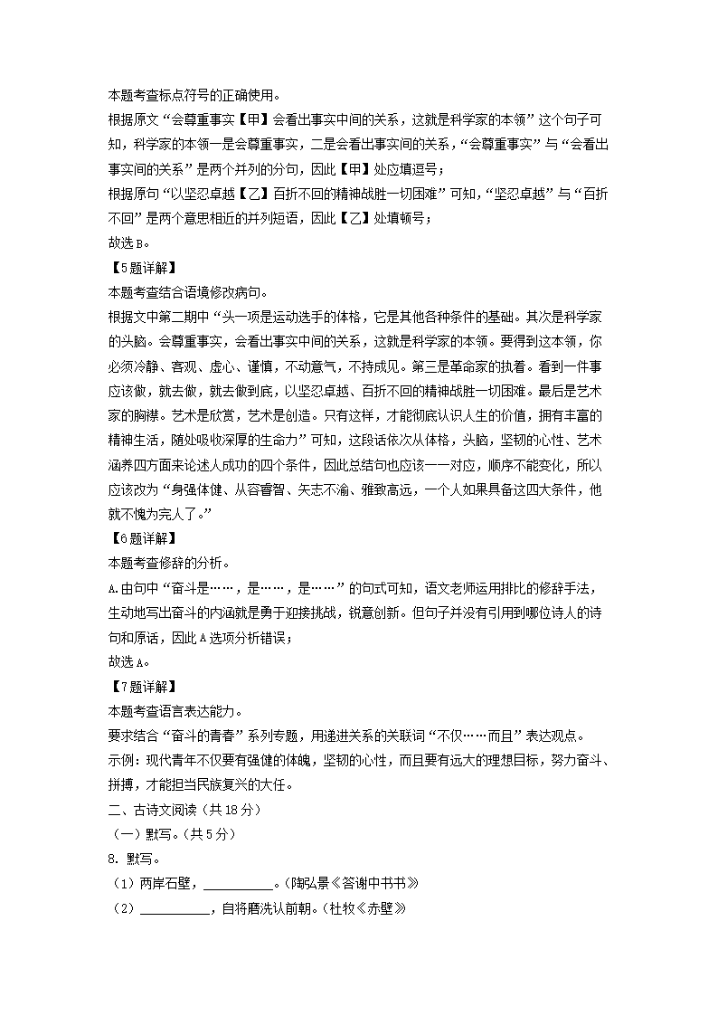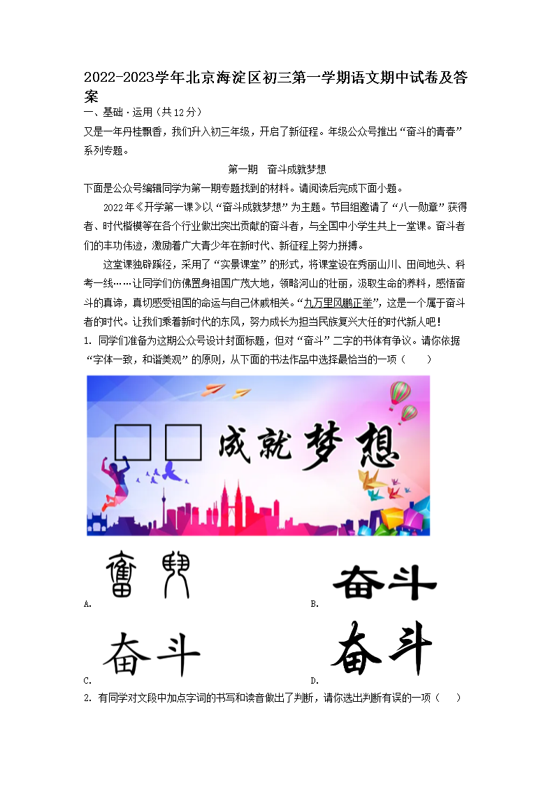 2022-2023学年北京海淀区初三第一学期语文期中试卷及答案(Word版)07-28