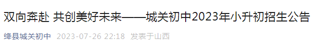 山西运城绛县城关初中2023年小升初招生公告(网报时间8月10日-8月25日)07-28