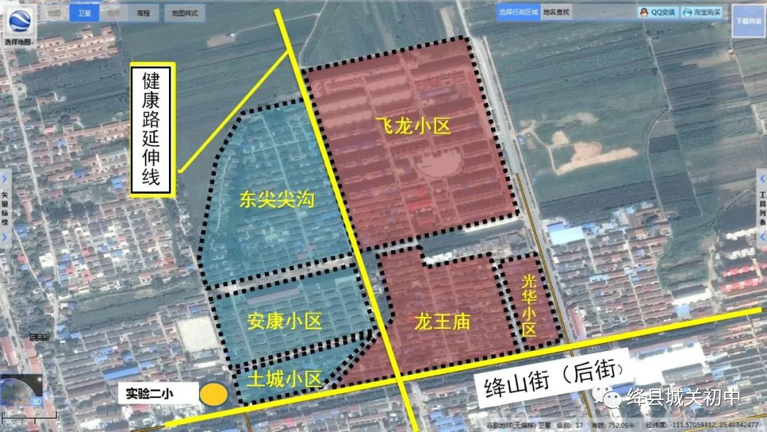 2、县城健康路以东住宅小区居民子女(绛山街以北以古绛镇中心卫生院对面胡同为界,含龙王庙、光华小区、飞龙小区)。