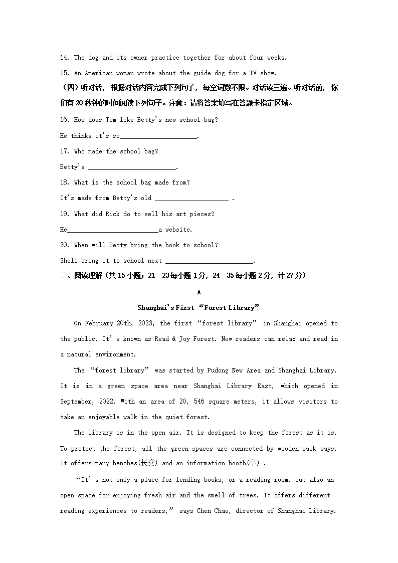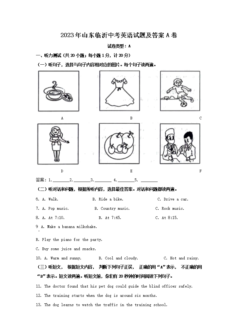 【文档预览】 文档大全网整理发布2023年山东临沂中考英语试题及答案A卷(Word版),前五页预览如下: