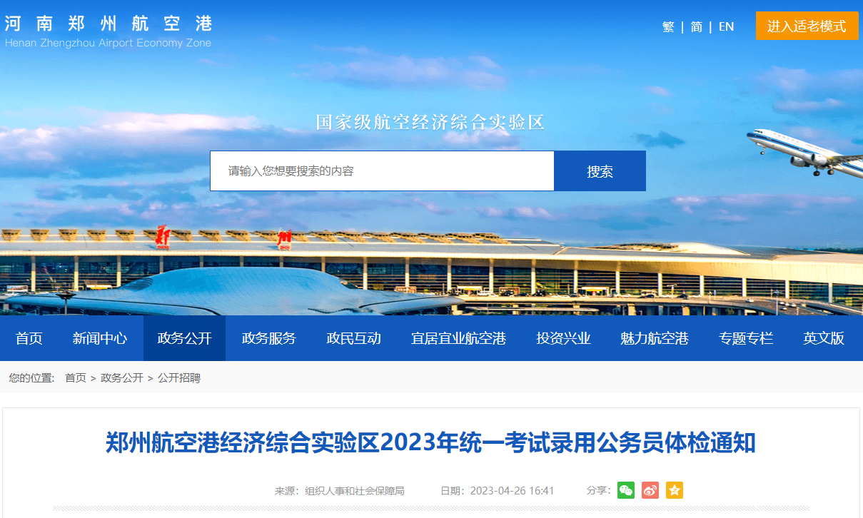 原文标题:郑州航空港经济综合实验区2023年统一考试录用公务员体检通知