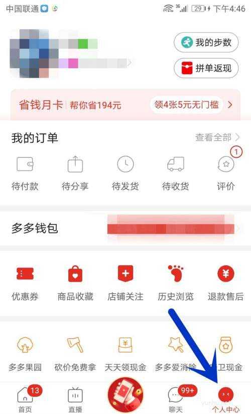 1、首先点击界面右下方的“个人中心”